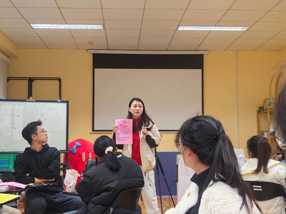 活动伊始,李湾老师进行了简短的自我介绍,并对各位同学的到来表示欢迎。同学们在便签上写下自己在团队中的昵称,并贴在胸前。活动分为热身、过渡和升华三个阶段,设置开展“心有灵犀”“你有我没有”“共创自画像”等环节,让同学们在互动的过程中逐渐熟悉彼此。