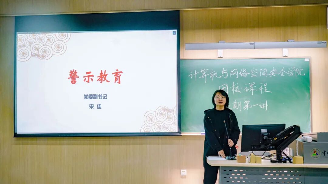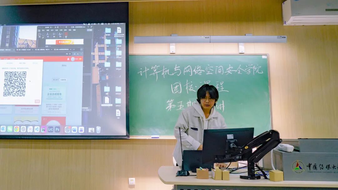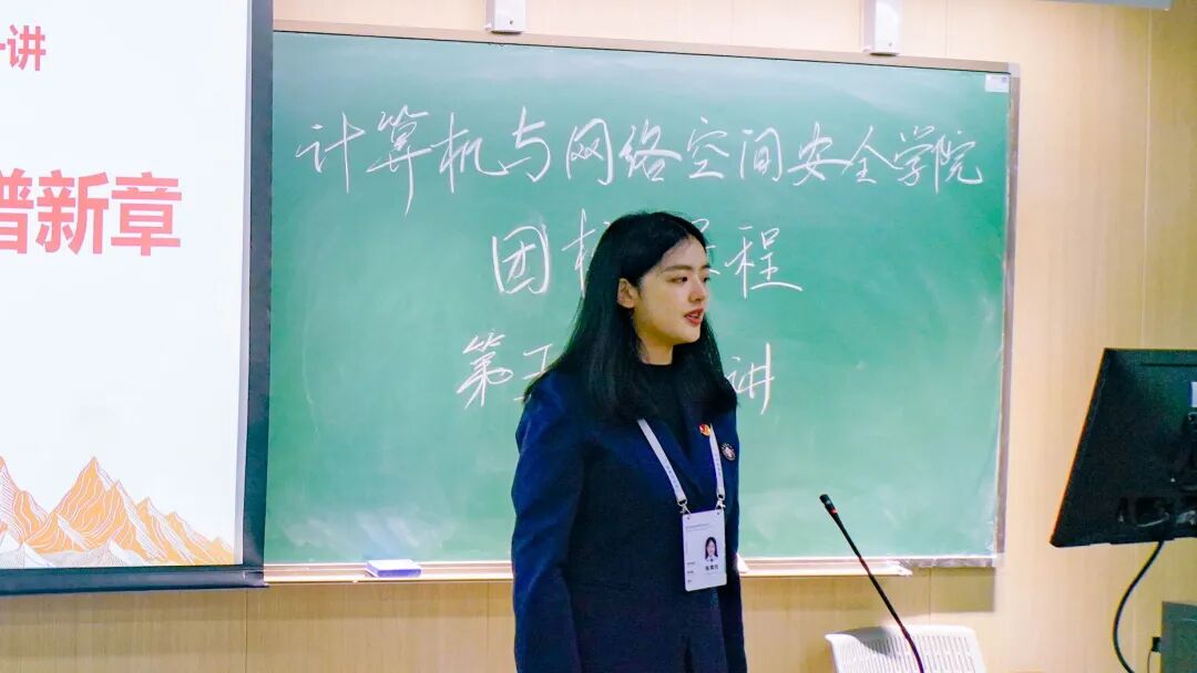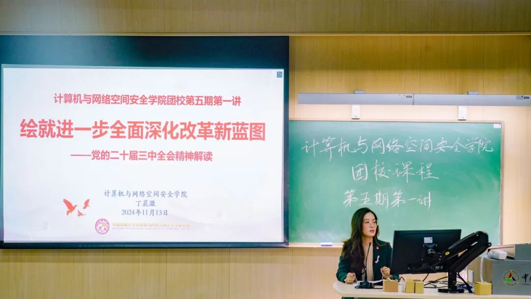 2024年11月13日下午,计算机与网络空间安全学院2024-2025学年第一学期第五期团课第一讲在立德楼302召开。党委副书记宋佳、团委书记丁晨溦、团委组织部成员、宣传部成员与22、23、24级本科与23、24级研究生各团支部骨干参与学习。