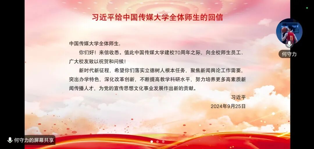 通过本次秋季读书周主题党日活动,党支部同志们进一步领悟了建校70周年习近平总书记给中国传媒大学全体师生的重要回信精神,并在本次专业知识交流的过程中拓展学术视野,激发求知热情,坚定了理想信念!