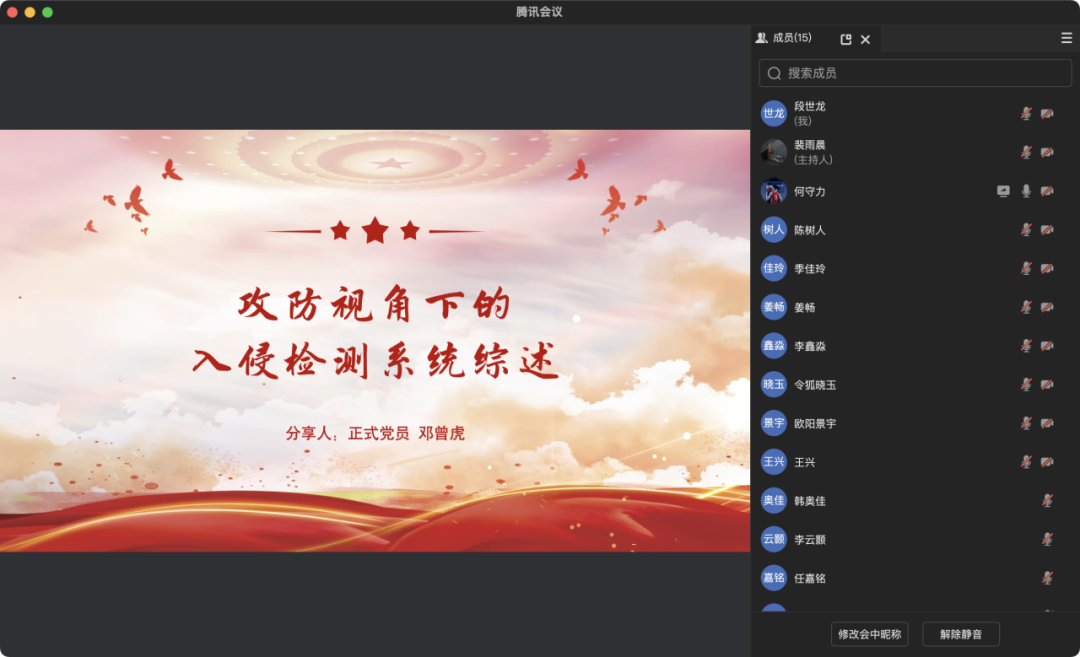 通过邓曾虎同志的分享,大家认识到了入侵检测系统在信息安全中的关键角色,并了解其工作原理和分类。此外,了解IDS的规避技术也帮助大家从攻击者的视角理解系统的潜在弱点,从而引导大家从攻防对抗的角度思考和设计更健全的网络安全解决方案。