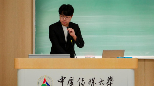 陈钰扬同学从自我介绍、工作经验、未来计划三个方面发表了自己的竞选演讲。他分享了自己在剪辑、拍摄等工作中的丰富经历,并从部门管理、培训计划、新栏目计划三个方面提出了未来的部门规划。