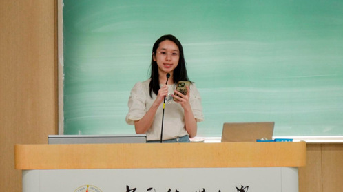 何世柳同学进行了自我介绍并分享了自己在组织部的收获,展示了自己线上线下多样的工作经历。她从学习与工作两方面指出了自己未来的发展方向与积极的工作态度。
