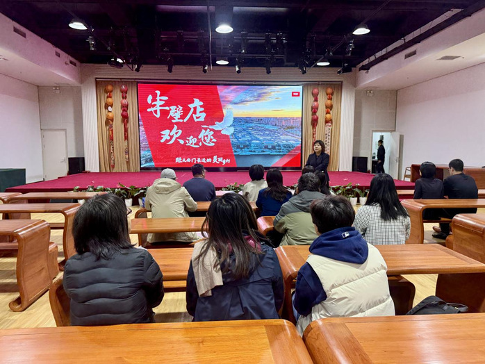 大家首先来到半壁店村党群服务中心,在新时代文明大讲堂观看《半壁店美丽乡村新蝶变》短片,直观感受半壁店村近十年来在美丽乡村建设方面所取得的显著成就和巨大变化。