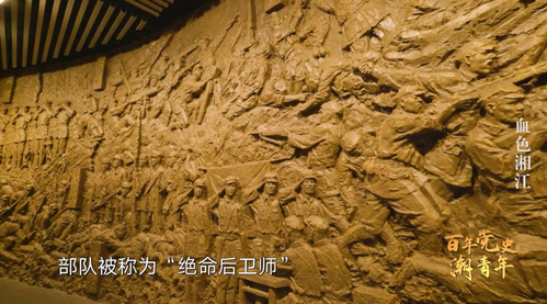 这里是位于广西兴安县的湘江战役纪念馆,迎面而来的这面巨像浮雕给人以强烈的视觉冲击,从天而降的炮弹、受惊嘶鸣的战马、前仆后继的战士和坚毅果敢的神情,让人仿佛置身于87年前那场悲壮的湘江战役。