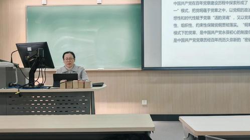 随后,唐老师梳理了党章的百年演变脉络。从1921年一大通过具有党章性质的纲领,到二大制定第一部正式党章,再到七大确立毛泽东思想为指导思想,党章在革命与建设的实践中逐步完善。改革开放以来,党章不断吸收理论创新成果,十四大融入中国特色社会主义理论,十九大确立习近平新时代中国特色社会主义思想为行动指南,二十大更以五十处修改回应时代要求,展现出一脉相承而又与时俱进的理论品格。