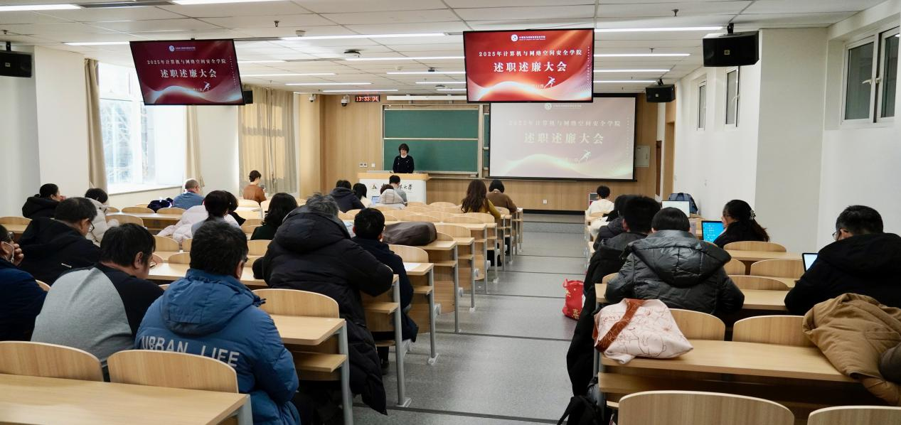 12月31日下午,计算机与网络空间安全学院召开2025年度领导班子述职述廉大会,全体教职工参加会议。会议由学院党委书记王淑娟主持。