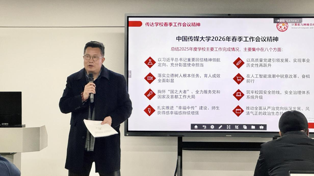 本次大会在紧凑而热烈的氛围中圆满落幕。此次会议既是新学期的工作部署会,也是学院乔迁新址后的动员鼓劲会,进一步统一了思想、明晰了方向、凝聚了共识。站在新起点,计算机与网络空间安全学院全体教职工将以饱满的热情、昂扬的斗志,坚决贯彻学校党委决策部署,在服务国家战略、赋能教育数字化转型、培育堪当民族复兴大任的时代新人征程中勇毅前行,奋力书写学院高质量发展的崭新篇章。