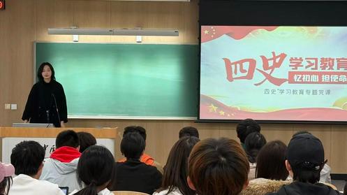 接着,金怡洁同志为全体团员带来了一场深刻的“四史”学习教育专题党课。她系统梳理了党史、新中国史、改革开放史、社会主义发展史的发展脉络,结合鲜活历史案例与时代背景,深入阐释了“忆初心、担使命”的核心要义。