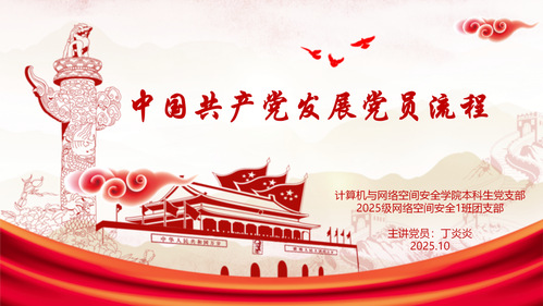 为深化党团联系,计算机与网络空间安全学院本科生党支部安排学生党员丁炎炎同志对接2025级网络空间安全1班团支部,积极开展党建带团建系列活动。
